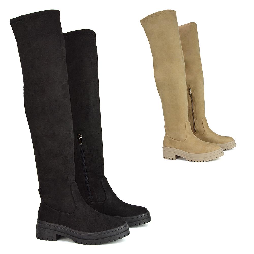 COMFY BOOTS ARE A MUST HAVE THIS TIME OF YEAR! THESE OVER THE KNEE HIGH BOOTS ARE A STUNNING MATERIALS MAKING THEM SUPER SOFT AND A CHUNKY GRIP FLEXIBLE SOLE AND LOW BLOCK HEEL, SIMPLY SLIP THEM ON WITH THE STRETCHY MATERIAL AND FASTEN WITH A SMALL INSIDE ZIP. THESE WILL BE YOUR GO TO! IDEAL FOR WORK, COLLEGE, DATE NIGHT, BRUNCHES & MORE. WE WILL BE PAIRING THESE WITH A BLACK MINI DRESS AND OVER SIZED BLAZER.