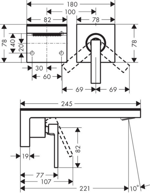 Hansgrohe AXOR MyEdition Mitigeur monocommande lavabo encastré pour montage mural, bec 221 mm, 47060000, couleur : chrome