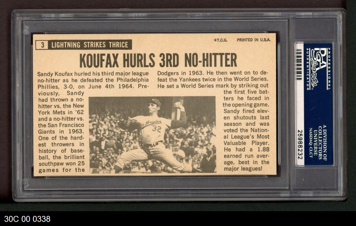 | 1964 Topps Giants #3 Sandy Koufax | PSA 6 - EX/MT | Front | Back |
