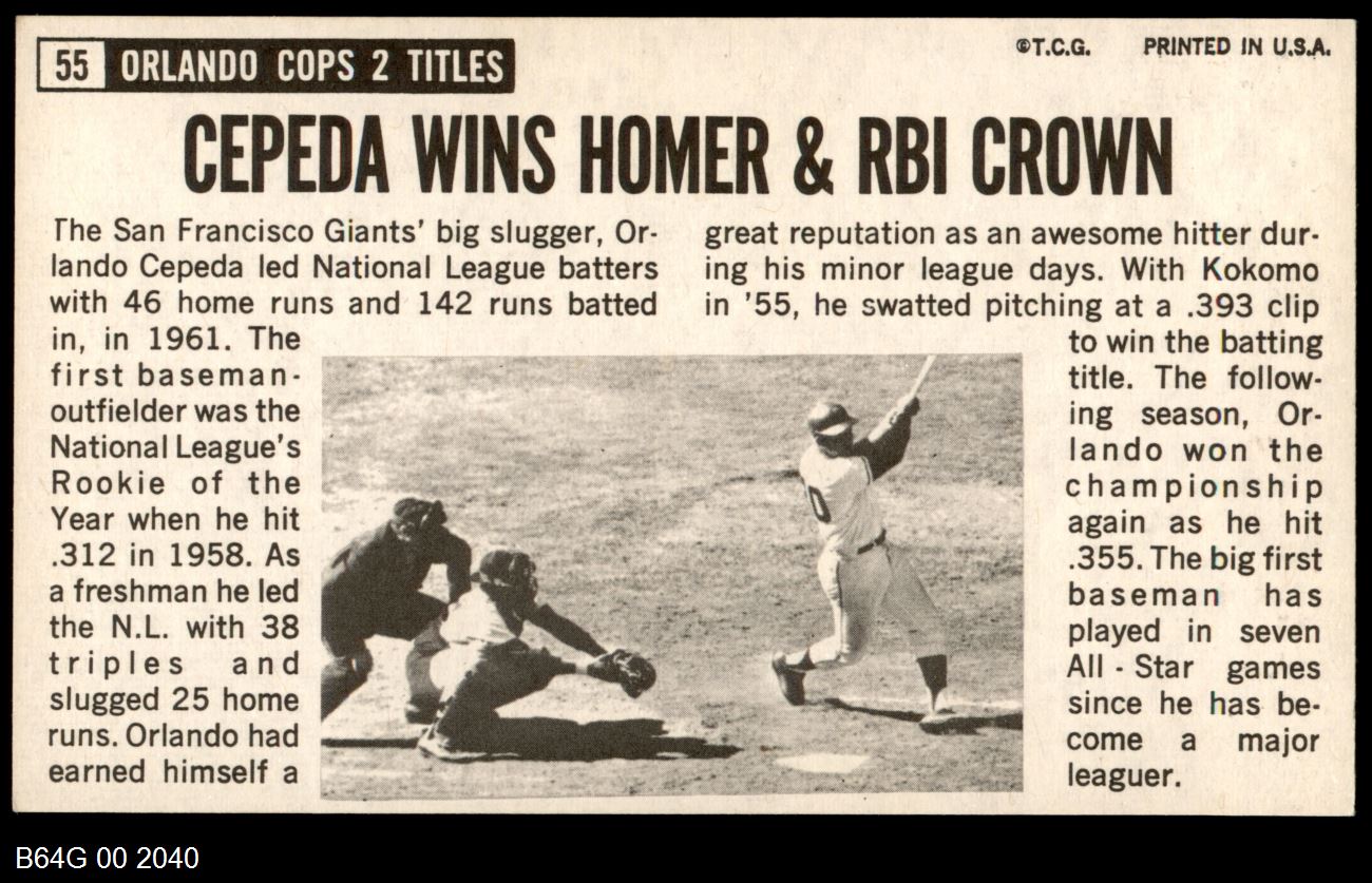 | 1964 Topps Giants #55 Orlando Cepeda | 7 - NM | Front | Back |