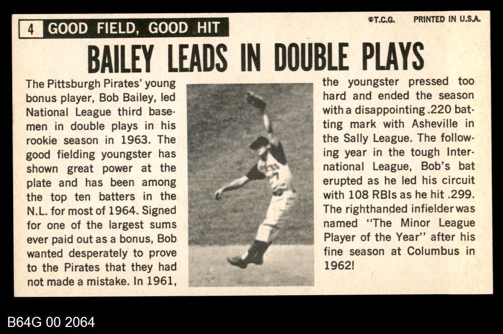 | 1964 Topps Giants #4 Bob Bailey | 6 - EX/MT | Front | Back |