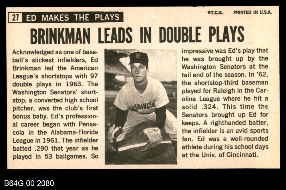 | 1964 Topps Giants #27 Ed Brinkman | 6 - EX/MT | Front | Back |