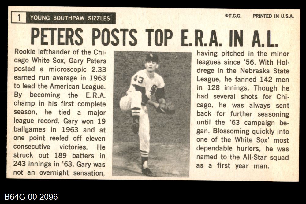 | 1964 Topps Giants #1 Gary Peters | 6 - EX/MT | Front | Back |