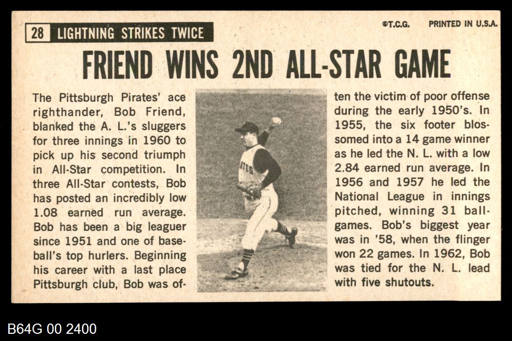| 1964 Topps Giants #28 Bob Friend | 5 - EX | Front | Back |
