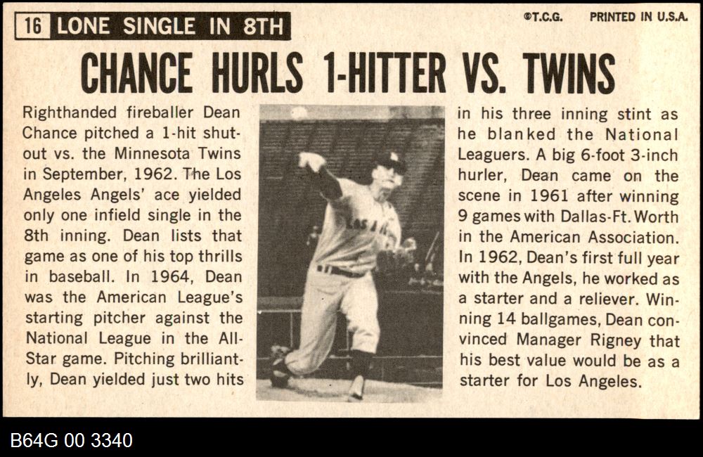 | 1964 Topps Giants #16 Dean Chance | 7 - NM | Front | Back |