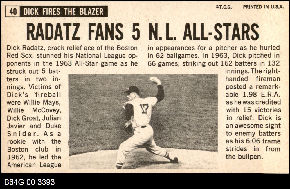 | 1964 Topps Giants #40 Dick Radatz | 7 - NM | Front | Back |
