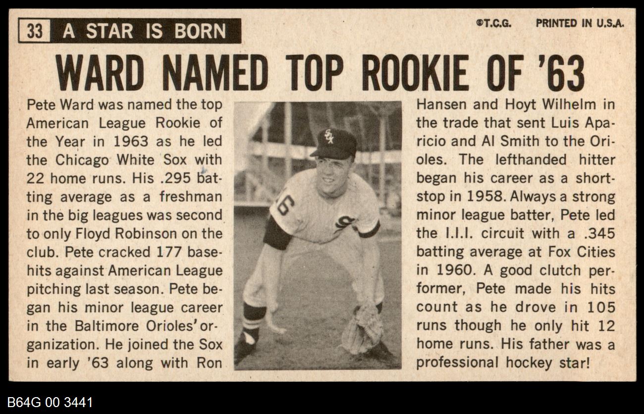 | 1964 Topps Giants #33 Pete Ward | 7 - NM | Front | Back |