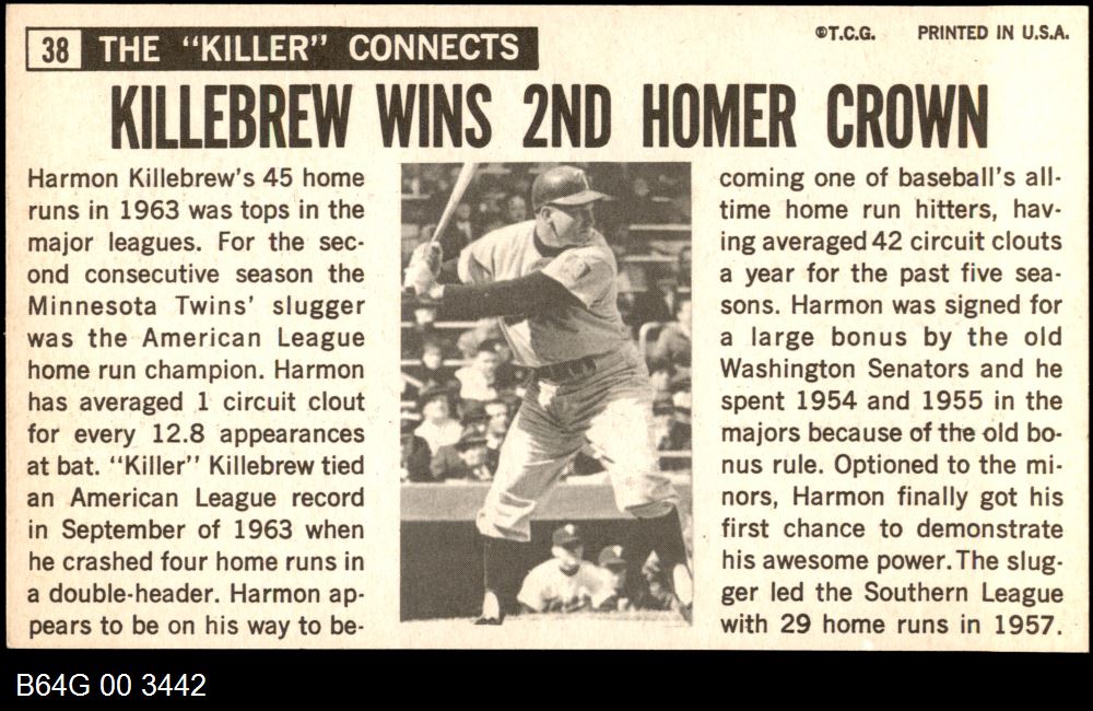 | 1964 Topps Giants #38 Harmon Killebrew | 7 - NM | Front | Back |