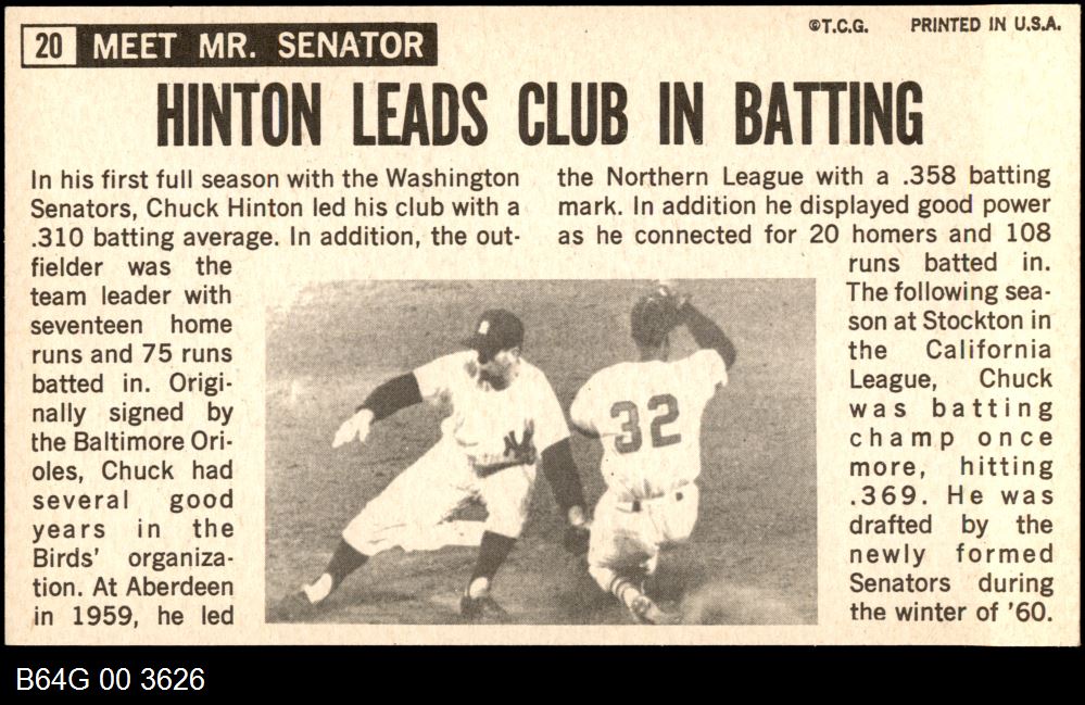| 1964 Topps Giants #20 Chuck Hinton | 7 - NM | Front | Back |
