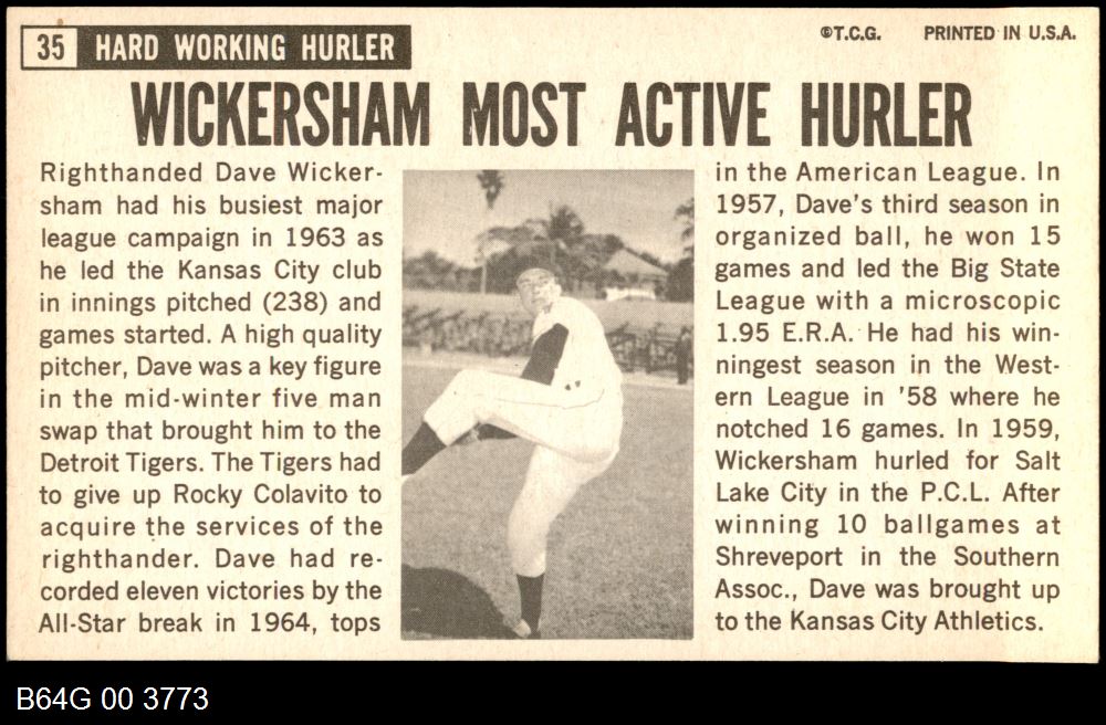 | 1964 Topps Giants #35 Dave Wickersham | 7 - NM | Front | Back |