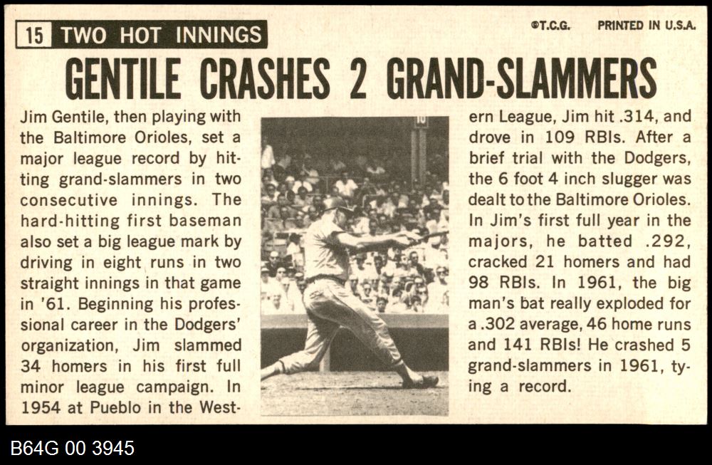 | 1964 Topps Giants #15 Jim Gentile | 7 - NM | Front | Back |