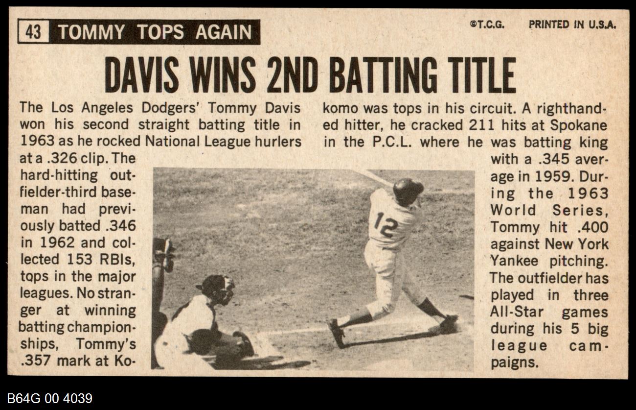| 1964 Topps Giants #43 Tommy Davis | 7 - NM | Front | Back |