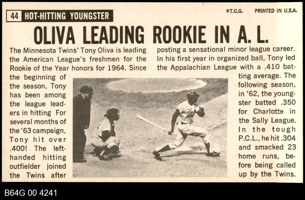 | 1964 Topps Giants #44 Tony Oliva | 7 - NM | Front | Back |