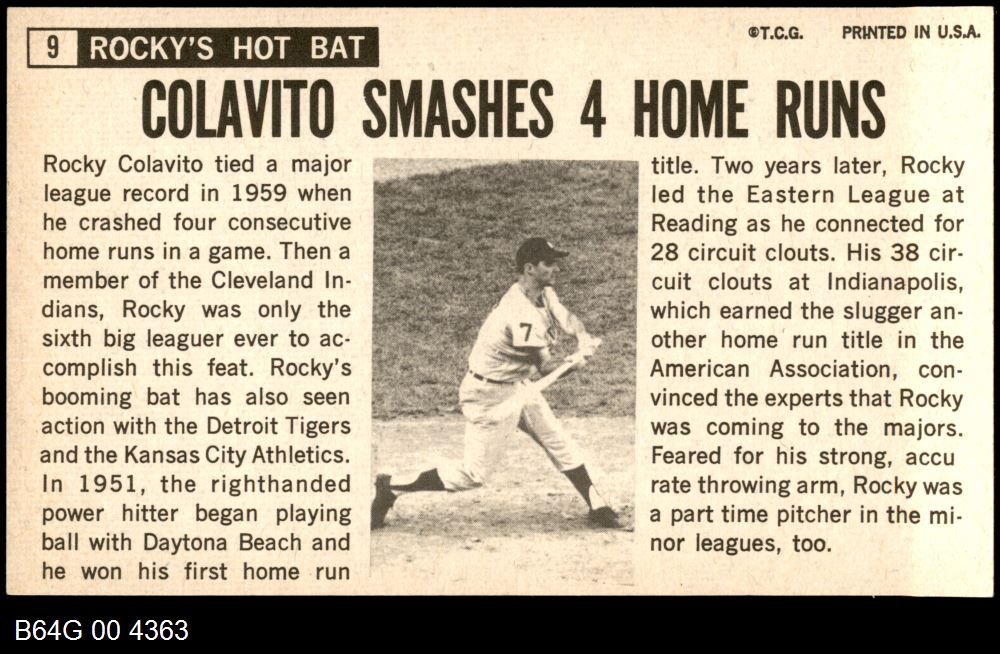 | 1964 Topps Giants #9 Rocky Colavito | 7 - NM | Front | Back |