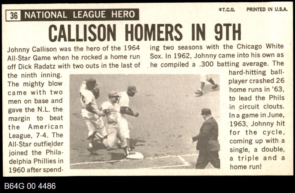 | 1964 Topps Giants #36 Johnny Callison | 7 - NM | Front | Back |