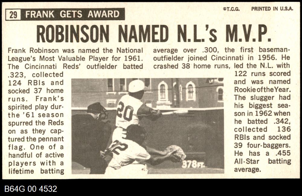 | 1964 Topps Giants #29 Frank Robinson | 6 - EX/MT | Front | Back |