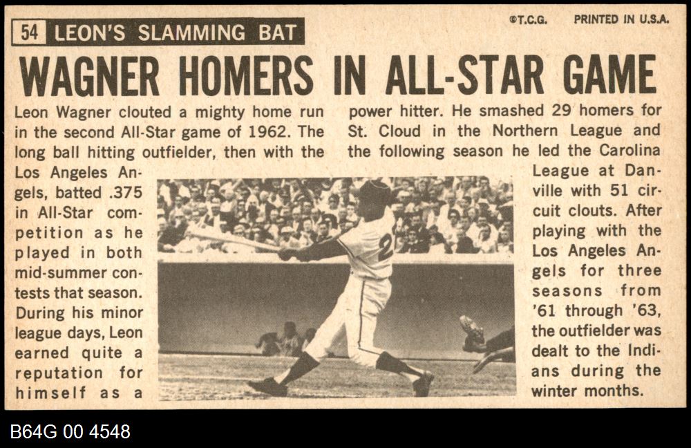 | 1964 Topps Giants #54 Leon Wagner | 7 - NM | Front | Back |