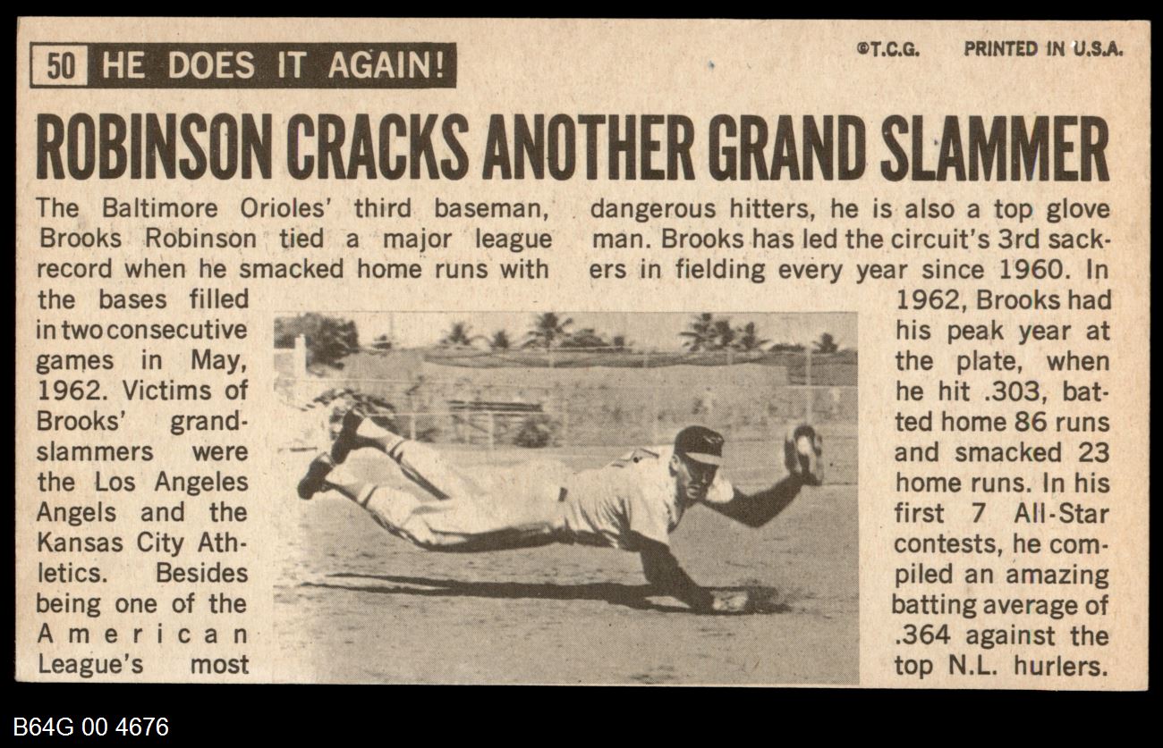 | 1964 Topps Giants #50 Brooks Robinson | 6 - EX/MT | Front | Back |