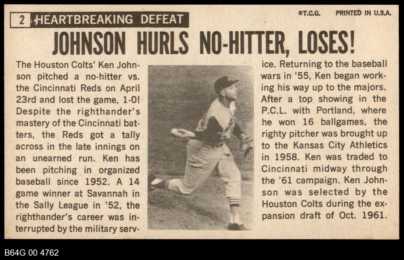 | 1964 Topps Giants #2 Ken Johnson | 5.5 - EX+ | Front | Back |