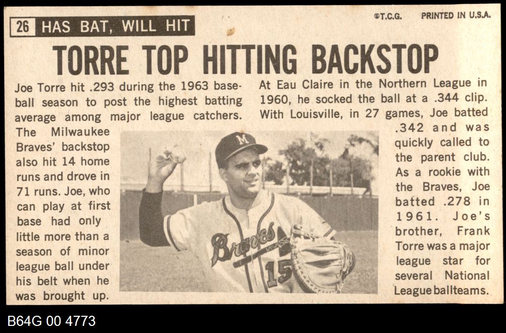 | 1964 Topps Giants #26 Joe Torre | 7 - NM | Front | Back |