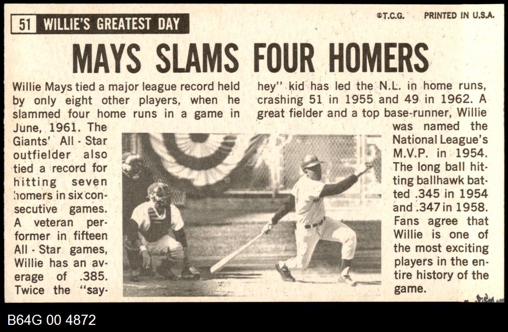| 1964 Topps Giants #51 Willie Mays | 6.5 - EX/MT+ | Front | Back |