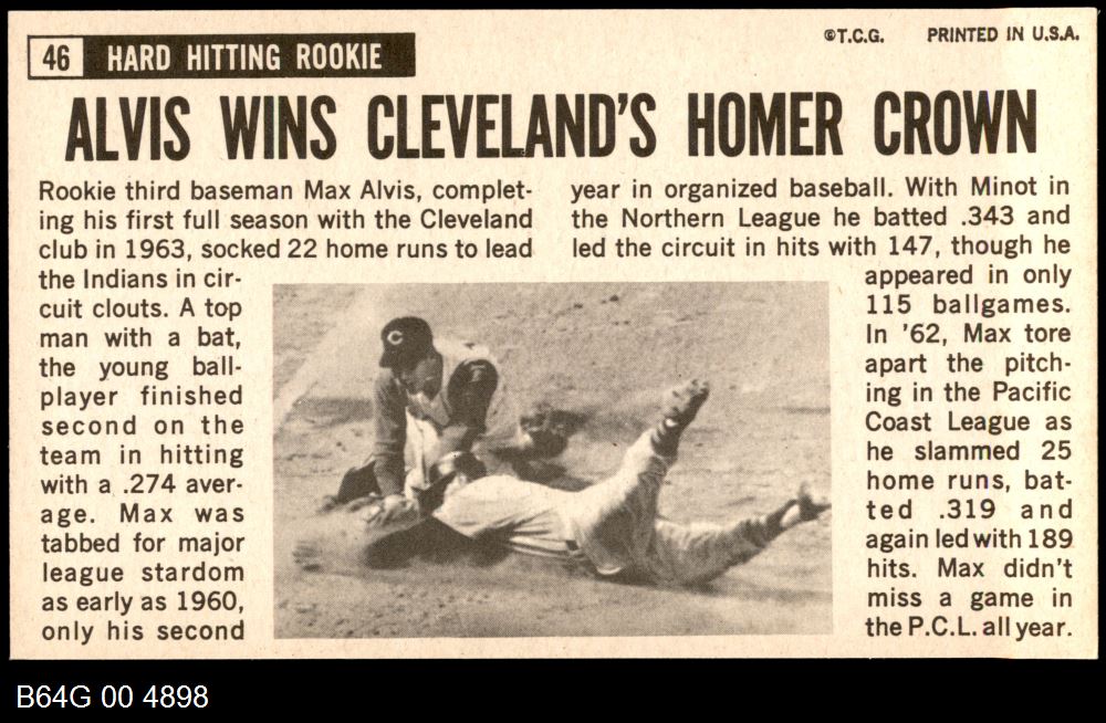 | 1964 Topps Giants #46 Max Alvis | 7 - NM | Front | Back |