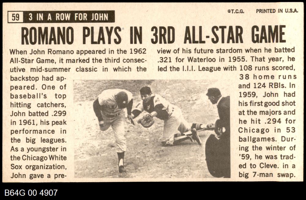 | 1964 Topps Giants #59 John Romano | 6 - EX/MT | Front | Back |