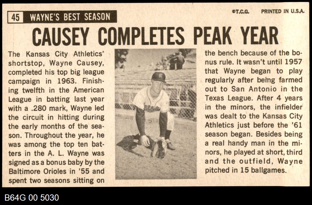 | 1964 Topps Giants #45 Wayne Causey | 7 - NM | Front | Back |