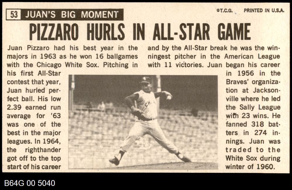 | 1964 Topps Giants #53 Juan Pizarro | 7 - NM | Front | Back |