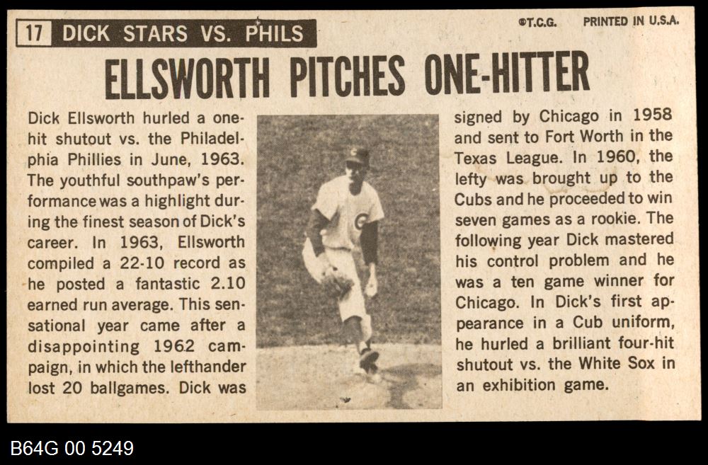 | 1964 Topps Giants #17 Dick Ellsworth | 6 - EX/MT | Front | Back |