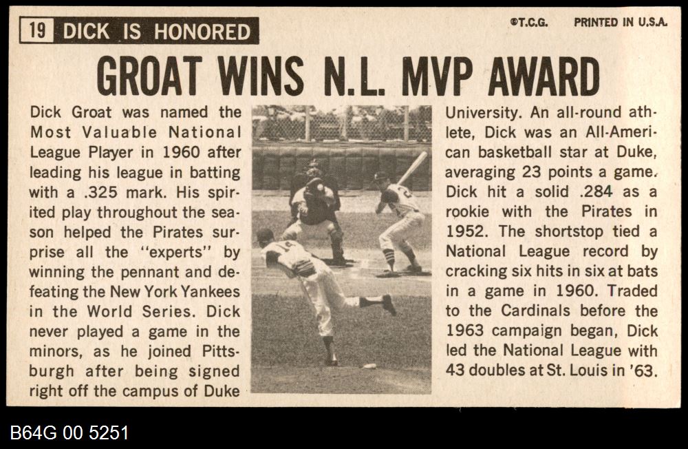 | 1964 Topps Giants #19 Dick Groat | 6 - EX/MT | Front | Back |