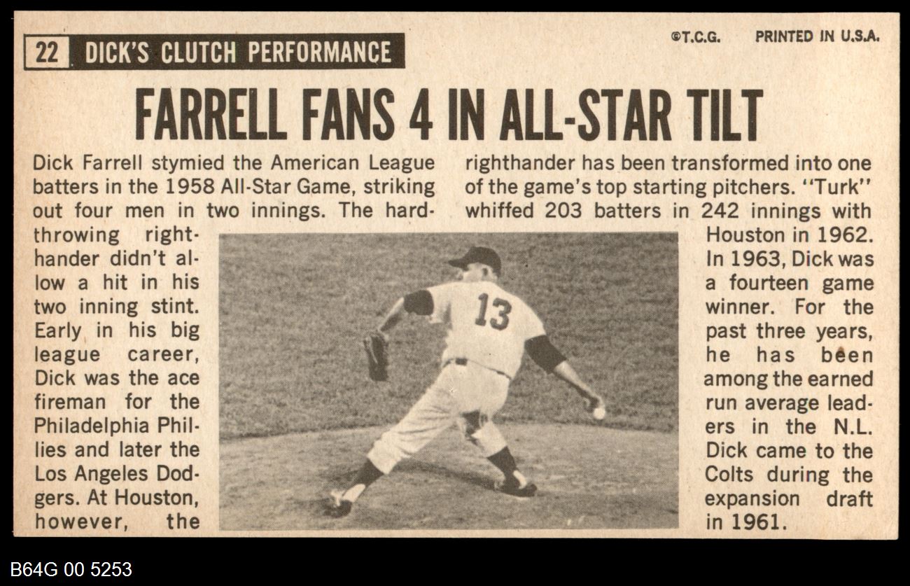 | 1964 Topps Giants #22 Turk Farrell | 6 - EX/MT | Front | Back |