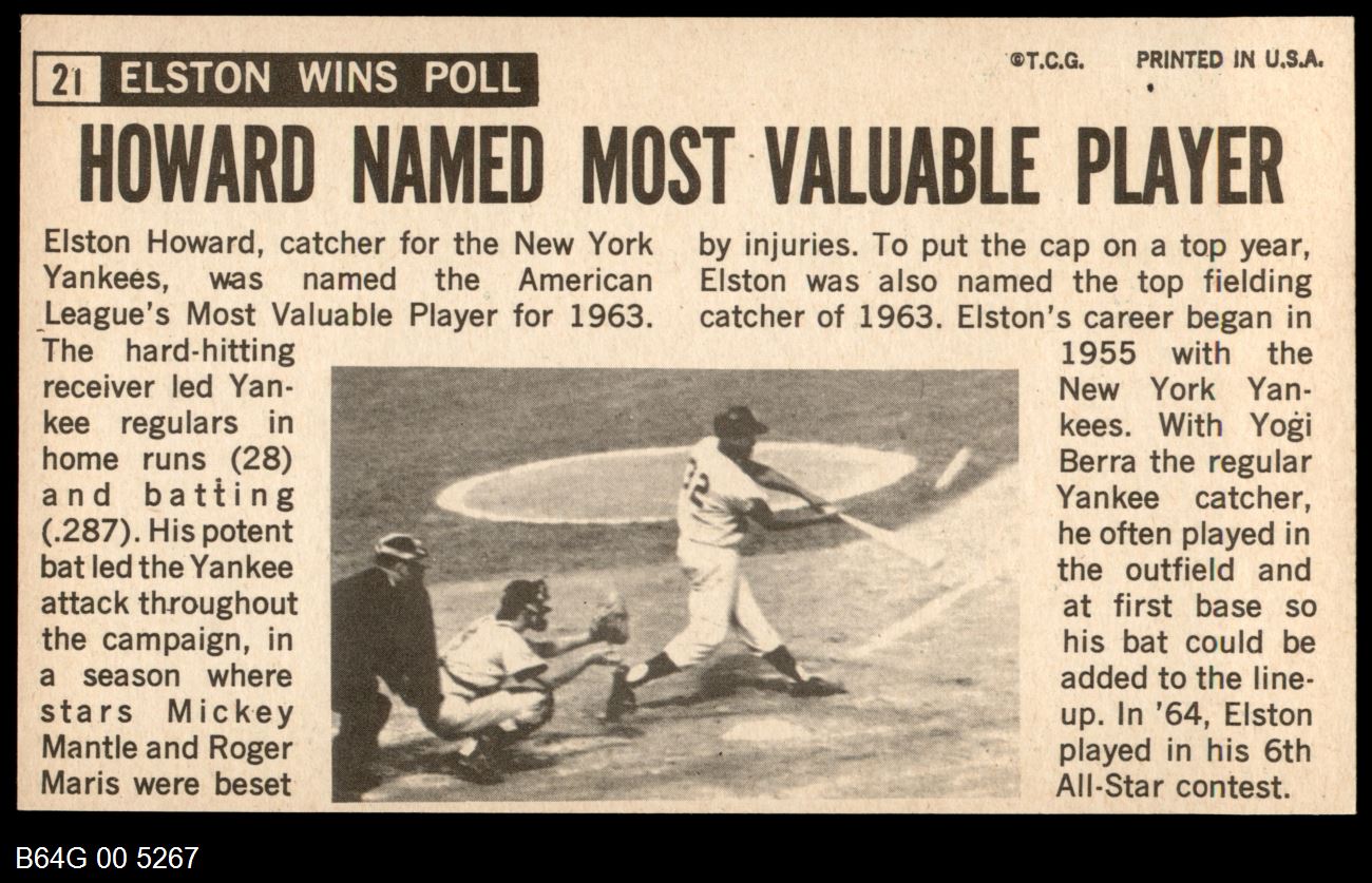 | 1964 Topps Giants #21 Elston Howard | 7 - NM | Front | Back |