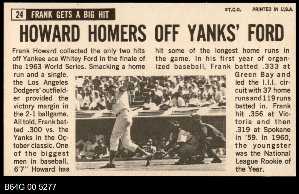 | 1964 Topps Giants #24 Frank Howard | 7 - NM | Front | Back |