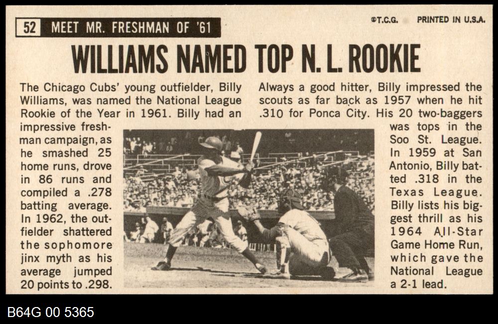 | 1964 Topps Giants #52 Billy Williams | 6 - EX/MT | Front | Back |