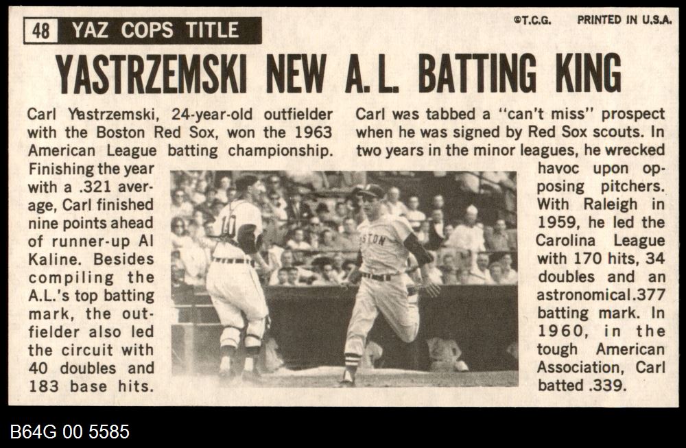 | 1964 Topps Giants #48 Carl Yastrzemski | 6 - EX/MT | Front | Back |