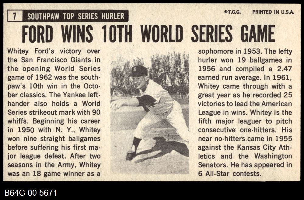 | 1964 Topps Giants #7 Whitey Ford | 5 - EX | Front | Back |
