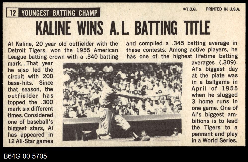 | 1964 Topps Giants #12 Al Kaline | 5.5 - EX+ | Front | Back |