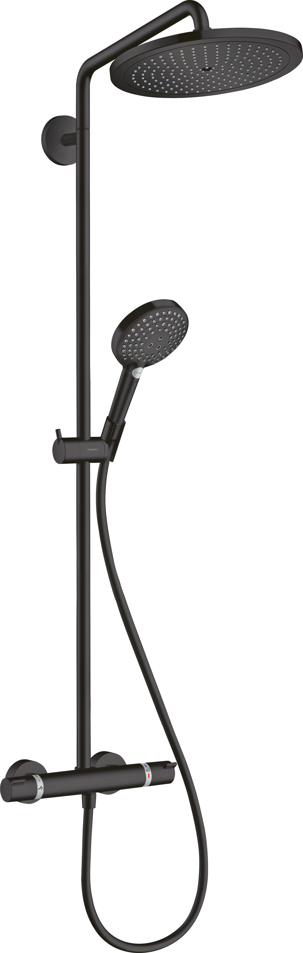 Hansgrohe Croma Select S Showerpipe 280 1-jet avec thermostat et douchette Raindance Select S 120 3-jet, 26890670, couleur : noir mat