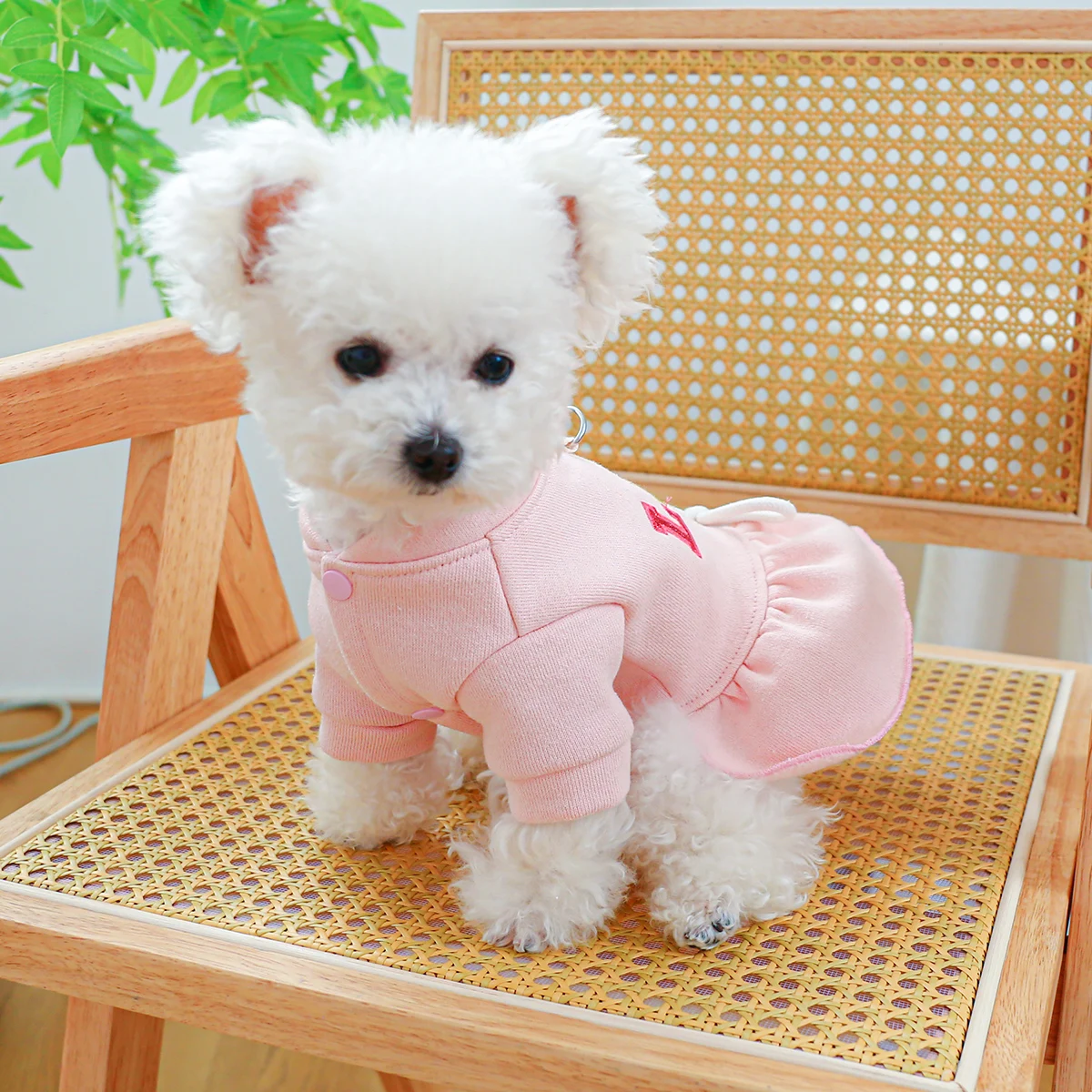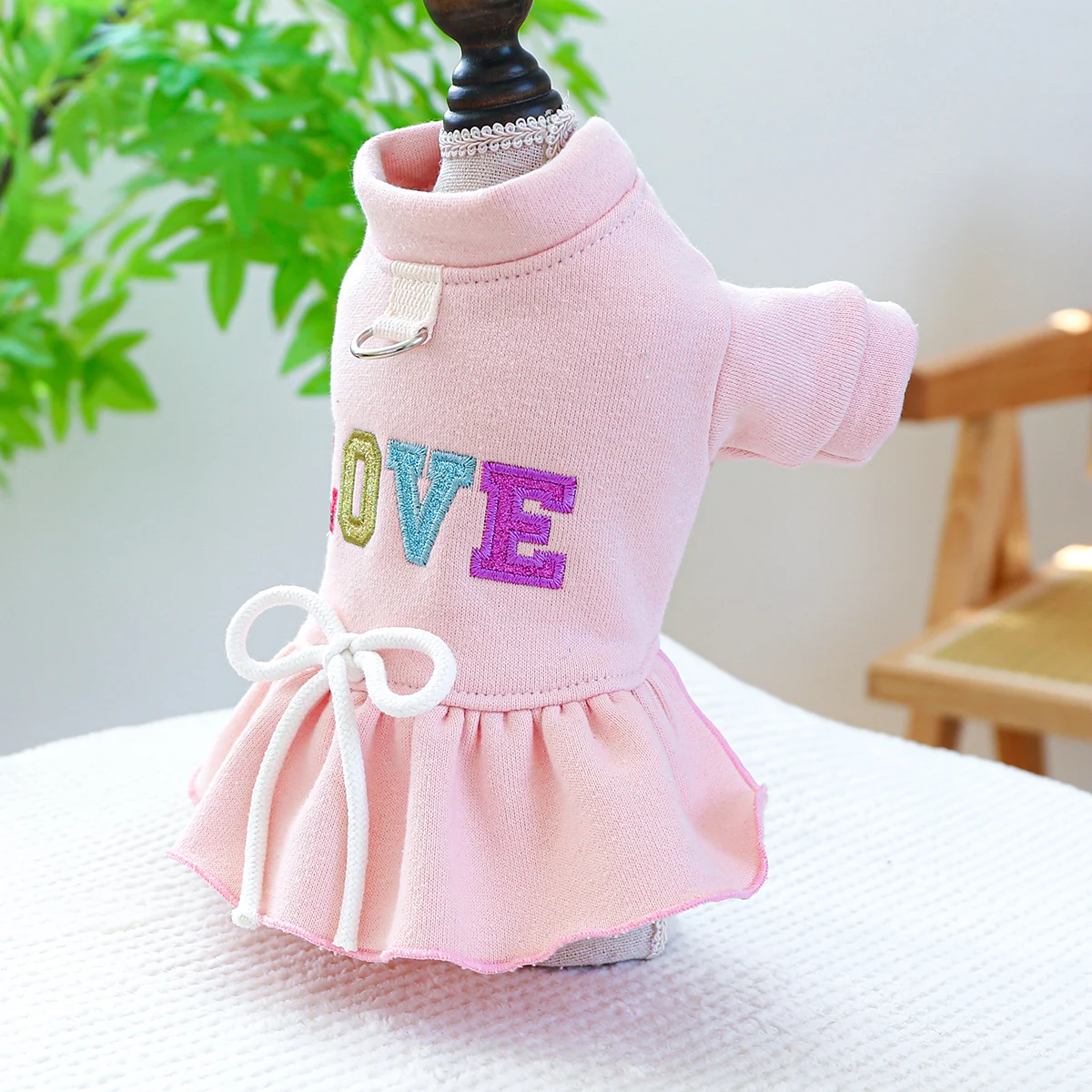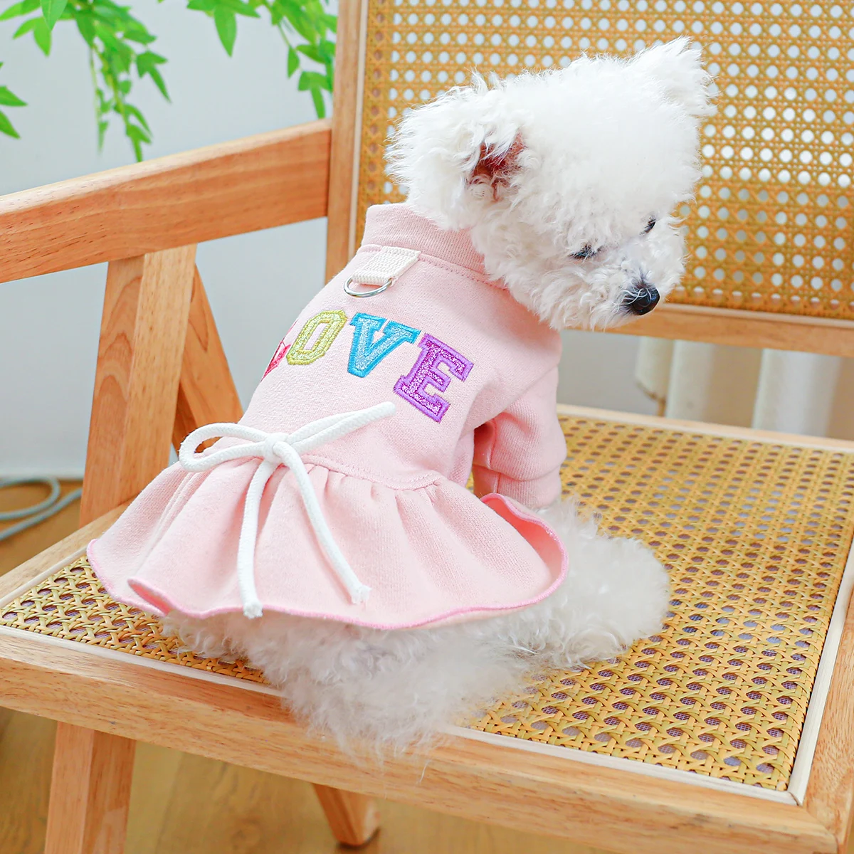 1PCS Pet Clothing Dogs Cats Spring Autumn Pink Love Princess Dress with Drawstring Buckle For Small Medium Dogs