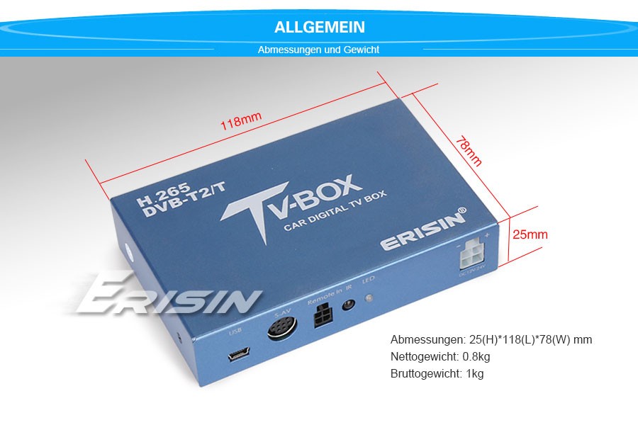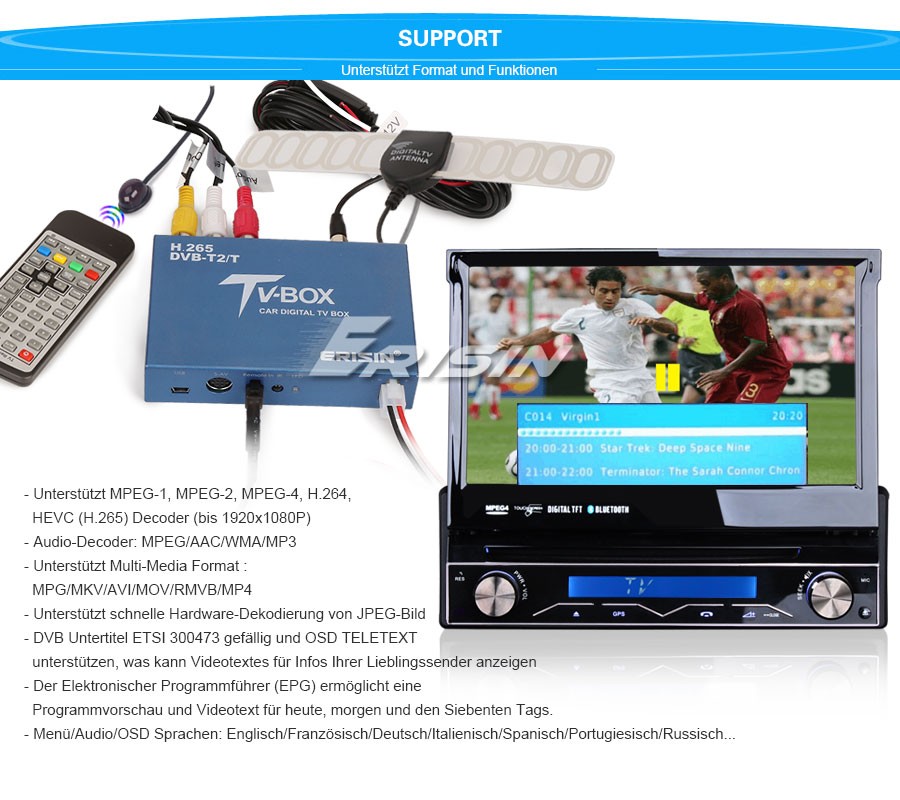 - Vollständig mit DVB-T EN300 744 / DVB-T2 EN302 755 Standard übereinstimmen