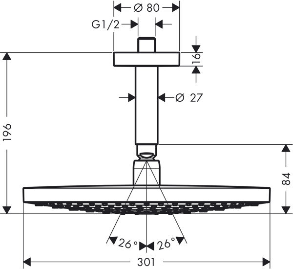 Hansgrohe Raindance Select S 300 2 jet douchette de tête avec raccord au plafond, 27337000, couleur : chrome
