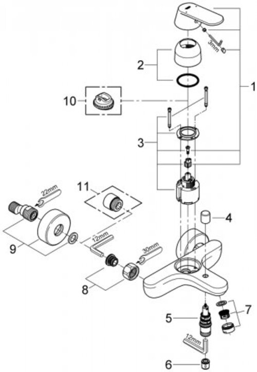 - 1 x batterie de baignoire à une main