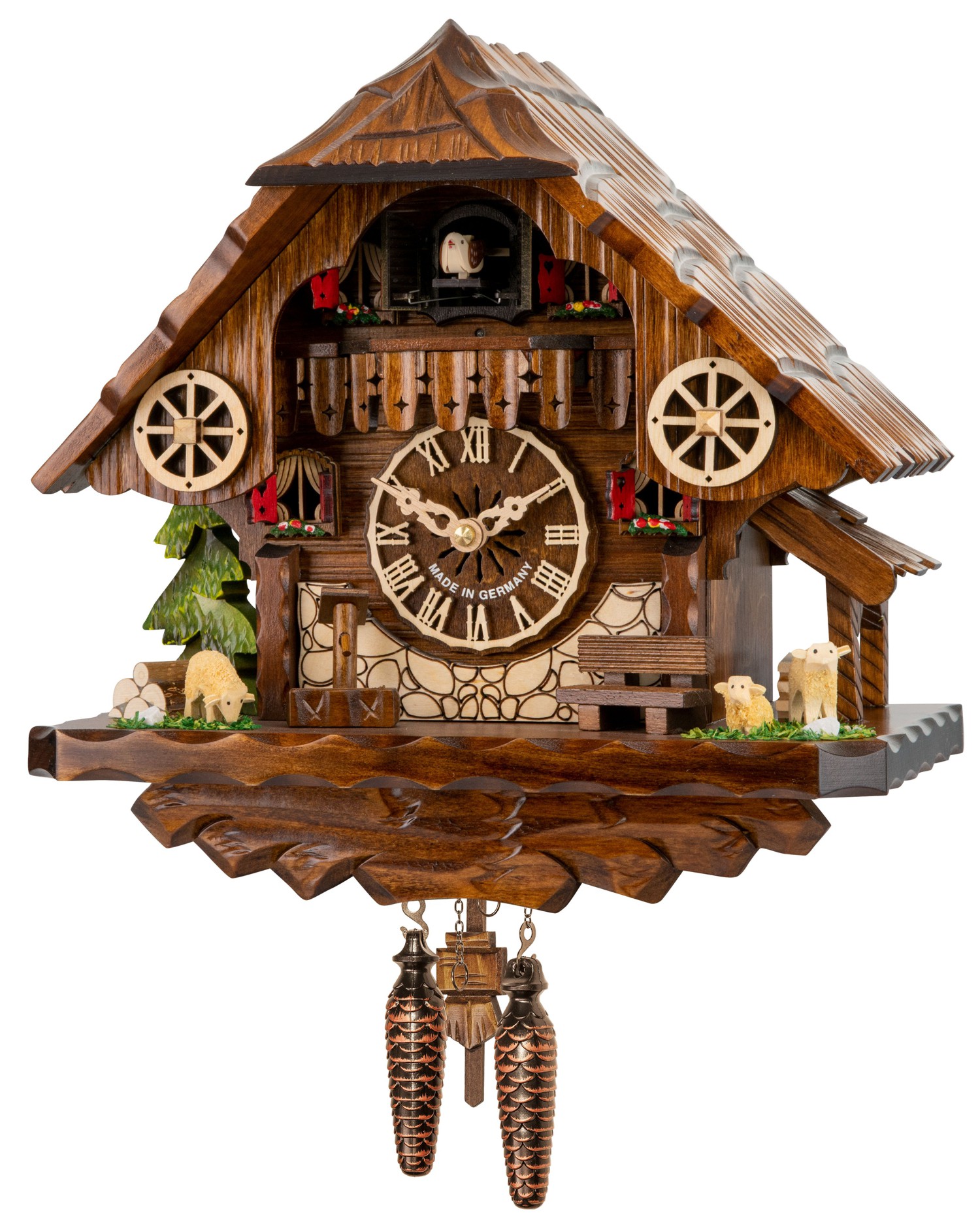 Ogni ora il cuculo chiama con eco. L'orologio si muove grazie ad un meccanismo di quarzo che contiene un sistema per bloccare durante le ore notturne. La durata di validitá delle batterie é di ca. 1 anno. Le dimensioni si riferiscono solo all’orologio, senza pendolo e pesi. 2 anni di garanzia L'orologio è di legno.