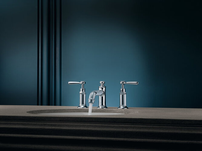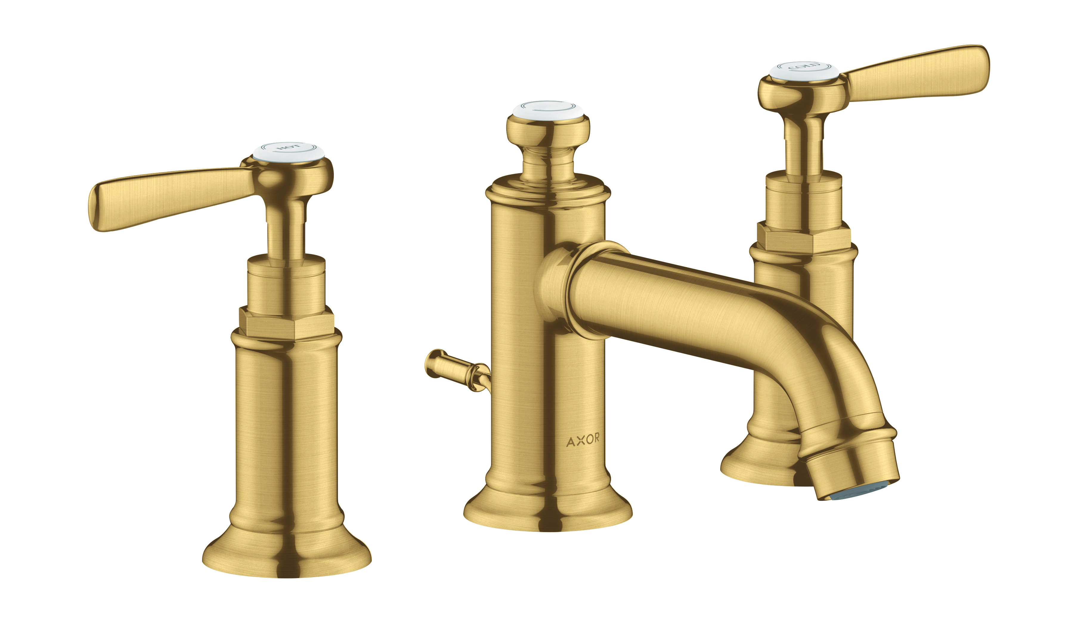 Hansgrohe AXOR MONTREUX Mitigeur lavabo 3 trous 30, vidange à tige de traction, poignées à levier, largeur 142 mm, 16535250, couleur : Brushed Gold Optic