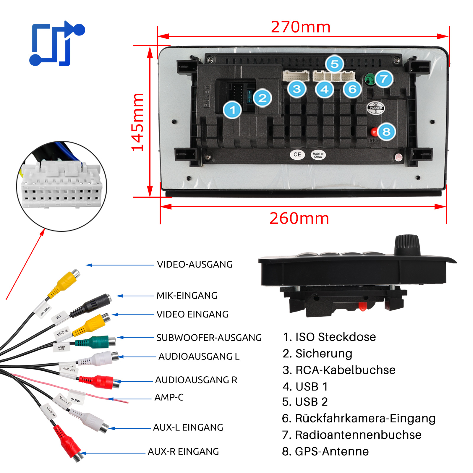 RDS/FM-Radio und Bluetooth und ASP Sound: Unterstützt Bluetooth 4.0, mit integriertem Mikrofon und Lautsprecher, damit Sie während der Fahrt freihändig telefonieren können. Unterstützt den Zugriff auf das Telefonbuch, die Musikwiedergabeschnittstelle usw. RDS unterstützt. Sie können 18 FM Radiosender speichern. Eingebauter ASP-Chip. Unterstützt 16-Band-EQ-Einstellung, die nach Ihren persönlichen Vorlieben eingestellt werden kann.Der Ihrem Originalsound sehr ähnlich ist.4 x 45W Verstärker, Surround-Sound und Subwoofer-Ausgang.