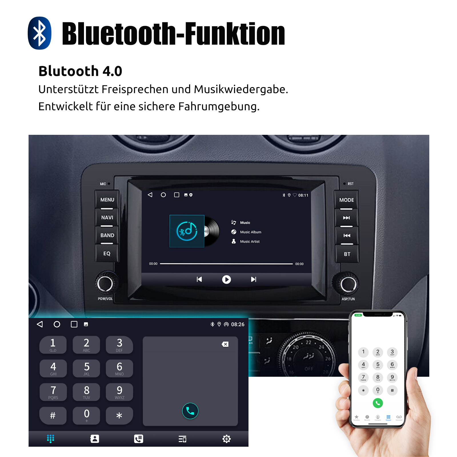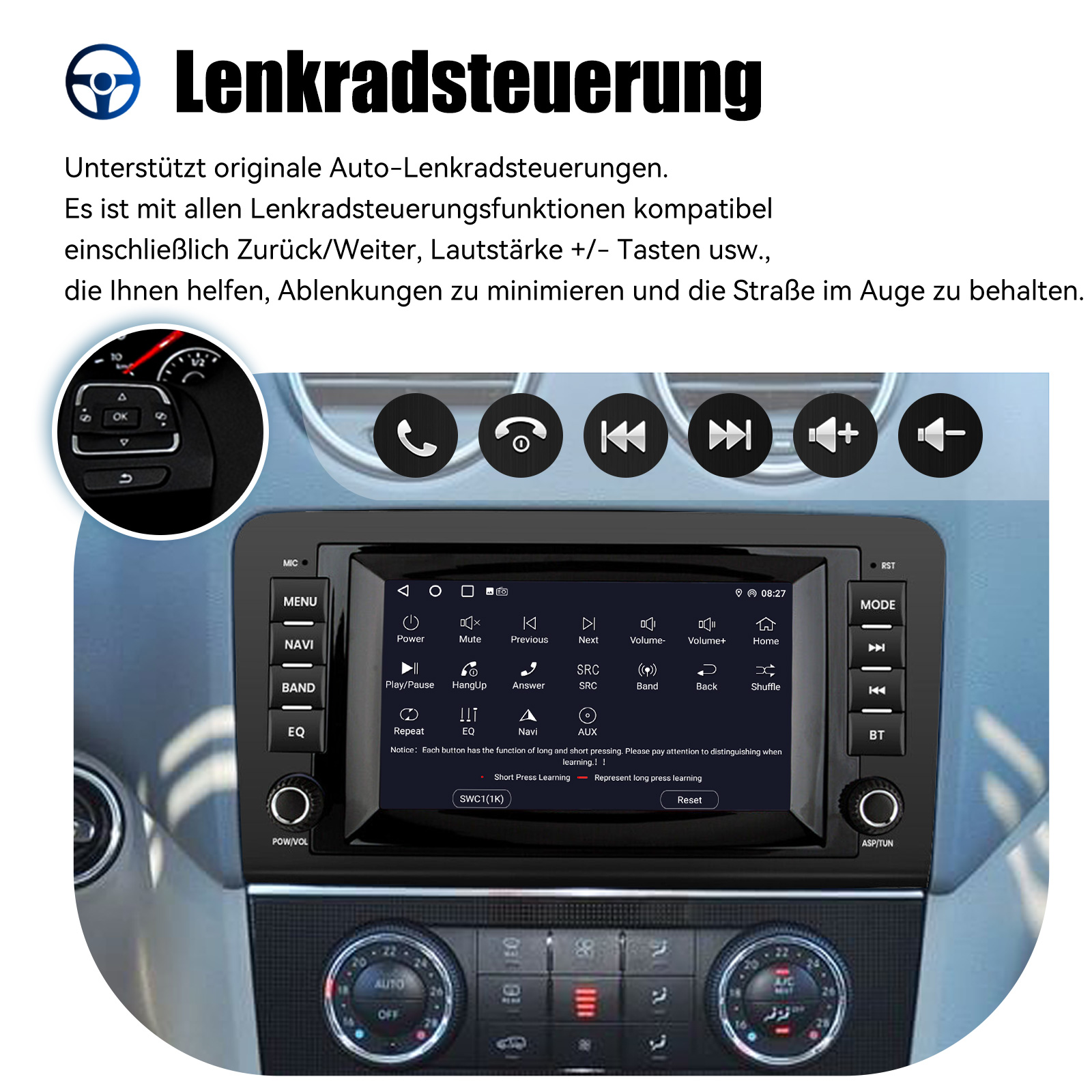 7 Zoll Android 13 Autoradio Für Mercedes Benz: Das Android Autoradio mit 7" 1024* 600 HD kapazitivem Touchscreen, 2GB RAM und 32GB ROM ermöglicht das Herunterladen Ihrer Lieblings-Apps und -Videos, damit das Autofahren nicht mehr langweilig wird. Kein zusätzlicher Rahmen, kein Kabelwechsel, Plug and Play. Es wird mit Canbus geliefert und unterstützt die meisten Originalfunktionen: Lenkradsteuerung, Rückwärtssignale und Lesen von Original-Computerdaten usw.