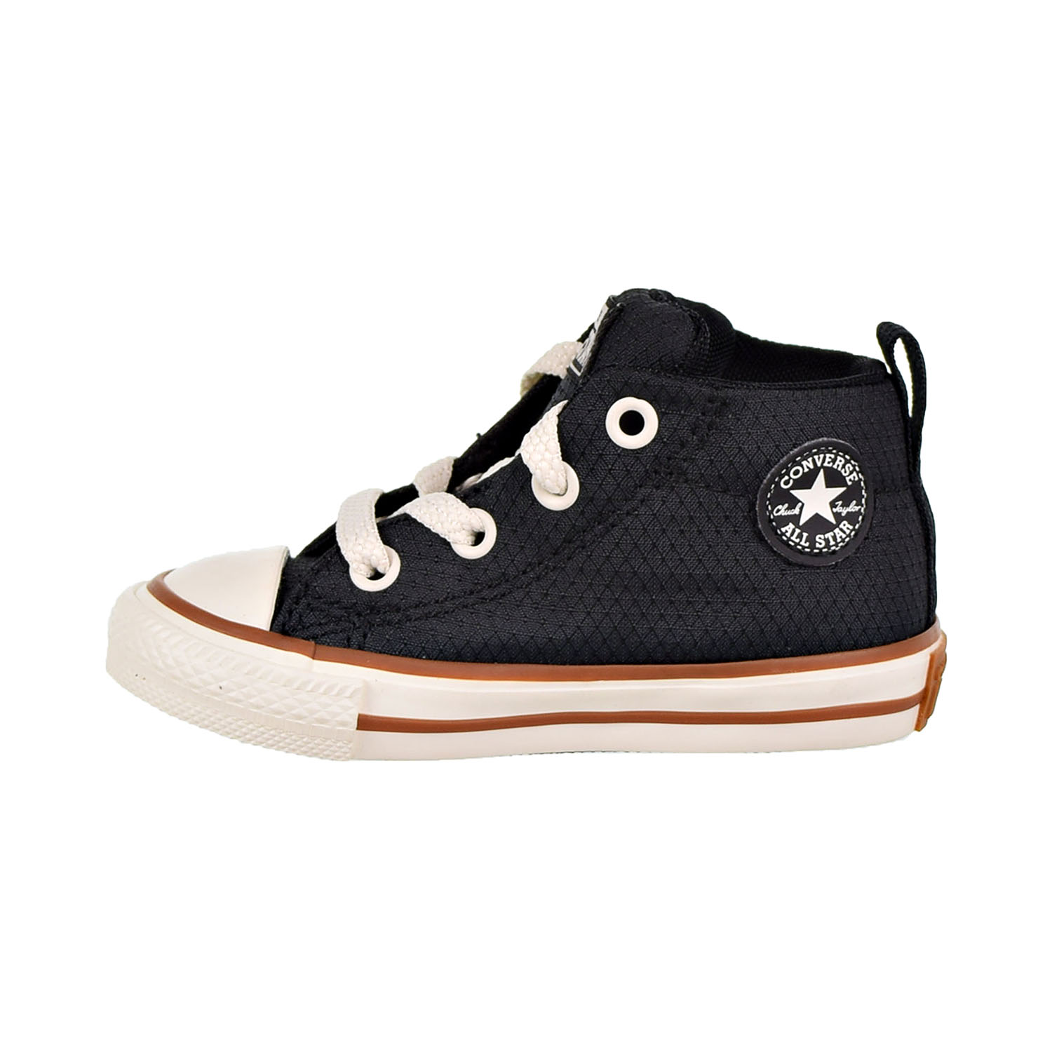 Durable all canvas upper. Mid-top silhouette offers excellent ankle protection with a padded collar and tongue. Lace-up closure with metal eyelets for a snug and durable fit. Canvas lining and a padded footbed for all-day comfort.
