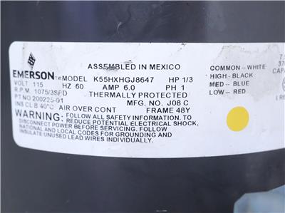 Emerson K55HXHGJ8647 Furnace Blower Motor 1/3HP 1075RPM 3SPD 115V 200225-01