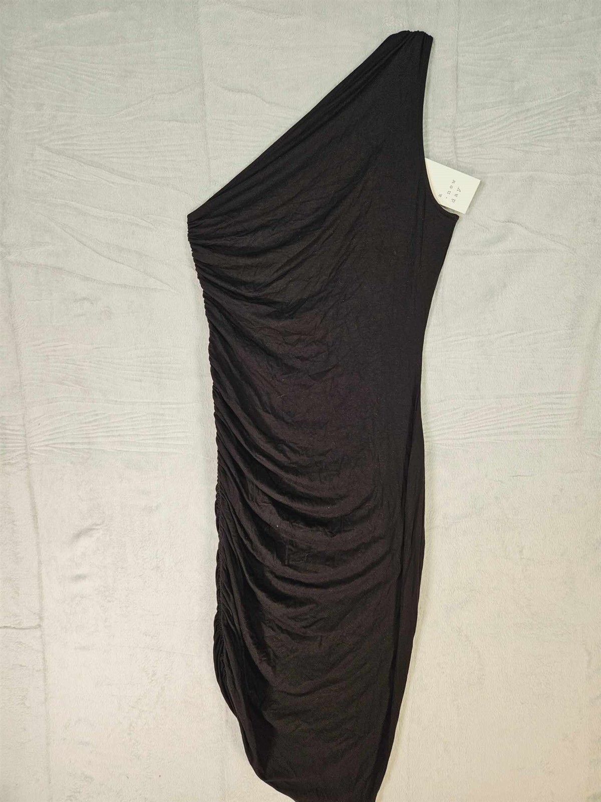 New Day One Shoulder Bodycon Dress Womens X-Small Shirred Stretch Black